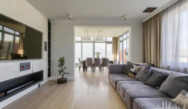 On the ground floor there is the master bedroom with a bathing room. There is also a kitchen with a large Island connected with a dining room and a cinema room. The first floor houses four bedrooms, a bathing room, toilet, walk-in wardrobe, a mezzanine office with windows overlooking the garden and a balcony. In the basement there is a linen room, drying room, laundry room, boiler room and a cool room for e.g. wine storage.
