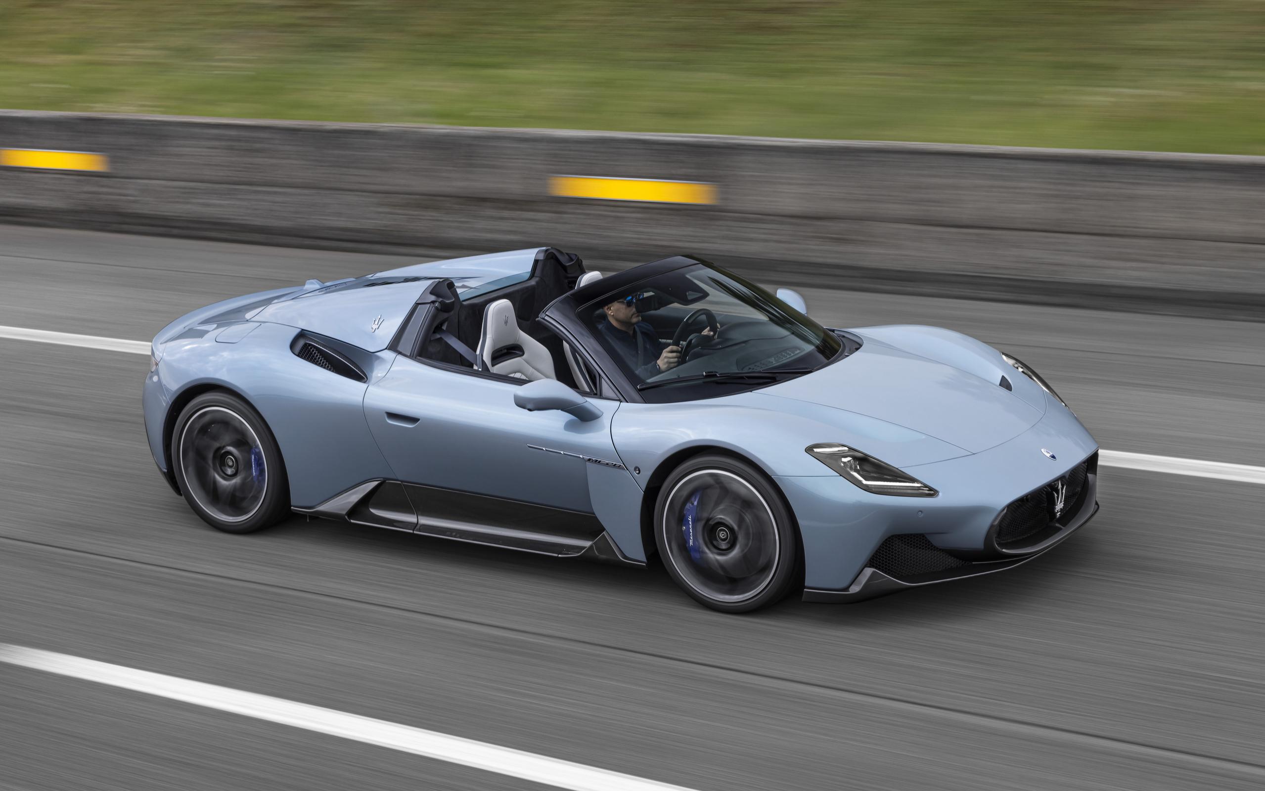 As usual, we take a look under the bonnet to start with. There are no surprises here: we have a 3-litre Nettuno engine with 630 horsepower and 730 Nm of torque. Such parameters make this car a helluva powerful machine: the first “parcel” appears on the display after 3 seconds and the top speed is 320 km/h. What’s more, it can also be achieved without a roof.