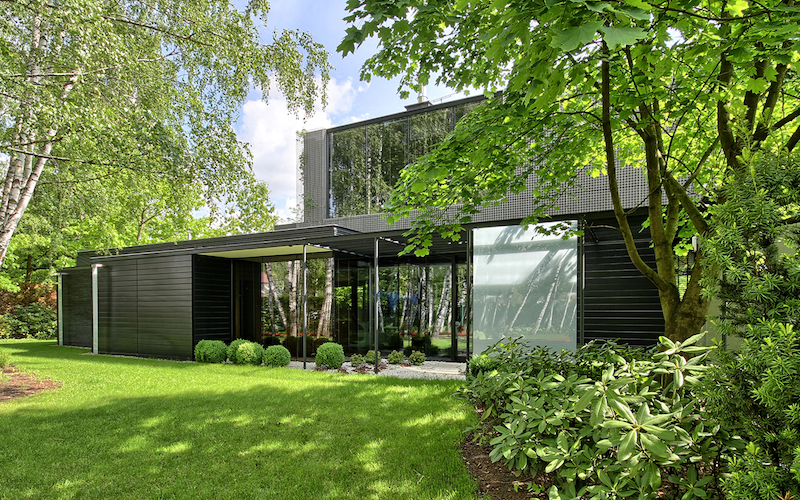Dom, w którym architektura przeplata się z naturą, znajduje się na działce o powierzchni 2220 metrów kwadratowych. Są tu aż trzy ogrody: parkowy, leśny i japoński. Urządzone ze smakiem wnętrza naszpikowano elektroniką użytkową (kino domowe, monitoring) i najwyższej jakości sprzętami kuchennymi. Unikatową atrakcją jest słonowodne akwarium morskie, liczące około 6 000 litrów wody. Cena wywoławcza tej posiadłości to 11 000 000 złotych!