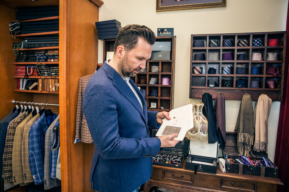 Jak wygląda bespoke tailoring w Atelier Zabłotny? Pierwsza i najważniejsza rzecz to ustalić, czego klient potrzebuje. Czy garnitur będzie używany na co dzień czy tylko na wyjątkowe okazje? Czy koszula ma być biznesowa czy casualowa? Czy marynarka ma być jako okrycie wierzchnie na chłodniejsze dni czy też będzie noszona pod płaszczem?