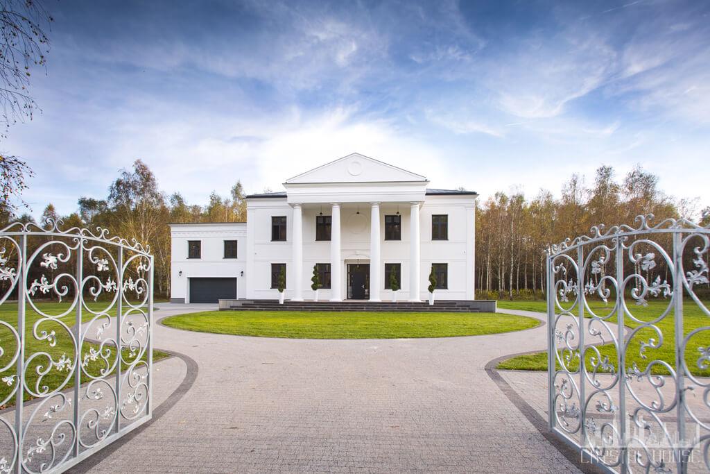 Rezydencja pod Warszawą, którą chcę Wam dziś pokazać, została zbudowana w sposób nawiązujący do tej bogatszej, murowanej wersji. To luksusowa posiadłość, której architektura łączy w sobie założenia wiejskiej posiadłości szlacheckiej i styl włoski (twórcy inspirowali się klasycystycznym pałacem Villa Rotonda). Jej ogromną zaletą jest bliskość stolicy dzięki położeniu w bezpośrednim sąsiedztwie trasy S8.
